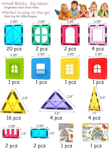 Specification: Jasonwell Magnetic Tiles Kids Toys Magnetic Blocks Building Sets 60pcs 3D Magnet Tile Building Blocks Toy Construction Educational STEM Toys Gifts for Toddlers Boys Girls 3 4 5 6 7 8 9 10 + Year Old